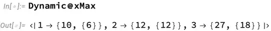 xMax[n] = {x, Lookup[xMax, n, Nothing]}];