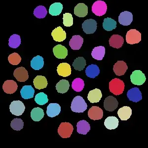 which is measured in pixels. We can manually check that the $20$ nm scale bar is about $\approx 60$ pixels in length, and as such convert the equivalent disc radii to nanometers: