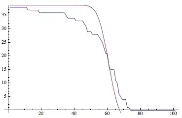 sol = FindFit[l, {a Erfc[b (z - c)], a > 10, 0 < b < 0.1, 30 < c < 60}, {a, b, c},z]which gives{a -> 18.1322, b -> 0.0740242, c -> 59.7275}thenShow[Plot[a Erfc[b (z - c)] /. sol, {z, 0, 100}], ListLinePlot[l], PlotRange -> All]. – Stephen Luttrell Feb 11 '14 at 18:31FindFitit says "In the nonlinear case, it finds in general only a locally optimal fit.", which means that it helps to impose constraints on the parameter values as I did. I didn't play with any of the possible settings for theMethodoption ofFindFit, so you might find a better approach hiding in there somewhere. – Stephen Luttrell Feb 11 '14 at 19:08