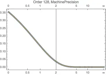 If we increase the initial precision to prec = 32, we see that the roughly exponential convergence continues.