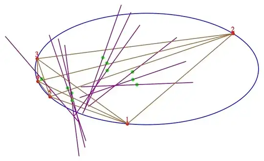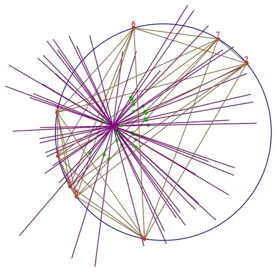 The detail I was missing is that the direction perpendicular to a cord $\overline{\mathbf{de}}$ of a circle is the one from the center of the circle to the centroid $\frac{\mathbf{d}+\mathbf{e}}{2}$ of the cord. Or simply from the center to $\mathbf{d}+\mathbf{e}.$ If we specify the direction in this way we no longer need to mention/require a circle.