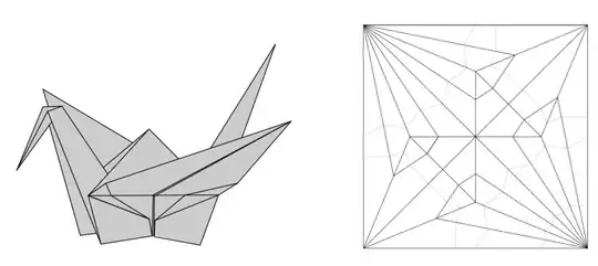 The perimeter of the flattened crane is about 0.5% larger than the perimeter of the initial square. The crane has 80 layers of folded paper. By increasing the number of folds it is possible to make the final perimeter as large as one wants, without mathematical limit. There is of course a physical limit, due to the nonzero thickness of the paper.