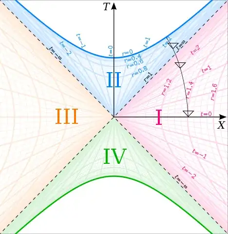 In region II, there are no null geodesics that hover at a fixed radius or reach larger radii at later times. This is a coordinate-independent fact if you use symmetry properties of the space to define the radius.