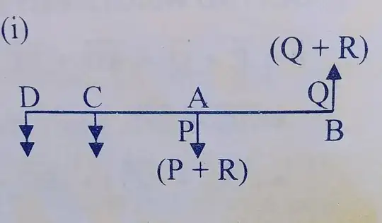 My book assumed that the forces $P$ and $Q$ acting at $A$ and $B$ respectively will have a resultant force $P-Q$ that will act at $C$. I take issue with this. I would've agreed with the book if P and Q were both acting at the same point; then the resultant would've been $P-Q$, which would've acted at the same point as $P$ and $Q$. However, that's not the case here. P and Q are acting at two different points in opposite directions. I think what will happen is that the body that the two forces are acting on will experience a net torque and start rotating.