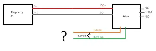 Like the original author, I noticed the left pin, when attached to the ground, will trigger the relay. However I want to be able to control it from both the raspberry pi, and a momentary switch (which I want to work even while the pi is off) .