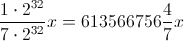 is a pretty poor number to store as an integer. So we need to multiply both the divisor and dividend by some number. Since we're operating on 32-bit numbers and we get multiplication results in 64-bit numbers we get the best precision with