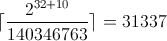 Another example with divisor 31337 which has the multiplicand magic number 140346763 and right shifts 10 bits.