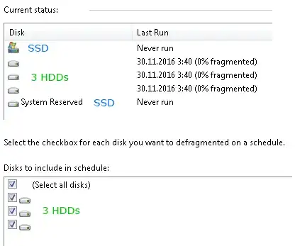 However, when I checked out my Windows 7's defragmenter application, it said that my 2 HDDs have been recently completely defragmented and consolidated, and that my SSD on which Windows is installed, has never even been analyzed. What gives?