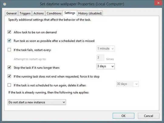It was also mentioned that it wouldn't change wallpaper if you've had your computer shut down at the time it should change. This is wrong, as the task can be set to run on the first boot after the selected time, so it will be set once you start the computer even if it was off during the time it should have changed. To set this up, go to the specific tasks properties and into the settings tab. Tick the second box in the window and off you go.