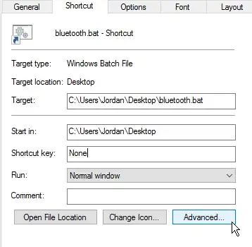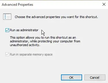 - Right click on the shortcut, click properties, then find the "Shortcut" tab at the top. Click "Advanced"