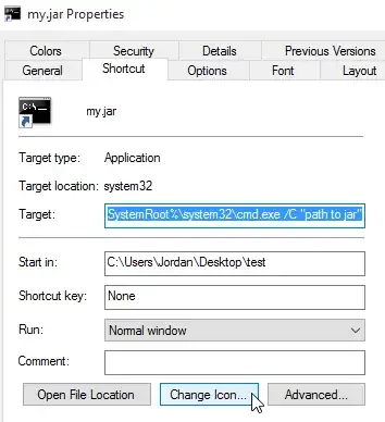 javawinstead of%SystemRoot%\system32\cmd.exe /Cfor the taskbar, but not for the start menu. The other answer works. – root May 10 '20 at 08:24