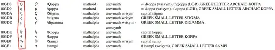 \koppathat will display ϙ in the XITS math font. – Nolord Oct 31 '22 at 14:52
