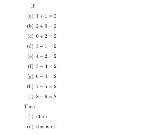 When doing proofs, I make the semantic distinction of numerating everything that is an assumption as letters and proof obligations in roman numerals.