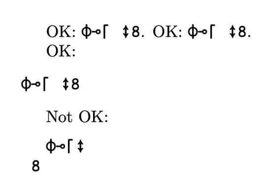 A spurious newline is inserted before 8 by lstlisting and the space before ↕ has disappeared. The same line using the verbatim environment or with verb is ok. Note that I cannot use the command lstinline because of an error. It looks like those special characters are messing with how listings interprets them.
