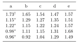 0.9786 1.1051 1.1472 1.3096 1.6757