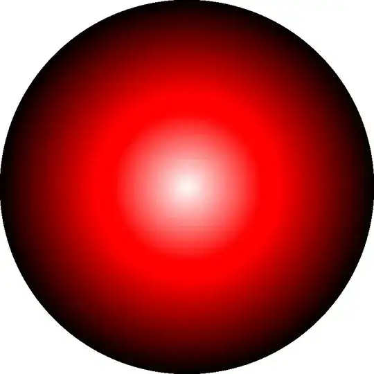 radius rA to color B on a circle with center cB and radius rB. But I find myself needing to specify intermediate color shades along the way to get the look I want, e.g. to get a circle that has a small white-red area in the center, a larger dark-red outer area, and a pure red area in between. I tried to achieve this by combining two radial shades in the following way: