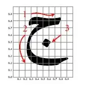 Here an example for the first letter jim use the same way for other letters, the idea is to add a grid to facilitate placing arrows on the contour of letter based on this answer