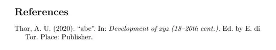 booktitle = {Development of xyz \dots (18--20th cent.)},? – nhck Feb 21 '20 at 10:13bootktitlebefore "(18-20th)" – Felix Emanuel Feb 21 '20 at 10:15