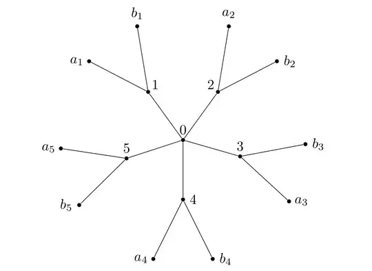 child { node[label=180+360/20-\X*360/5+20:$a_\X$] {} }