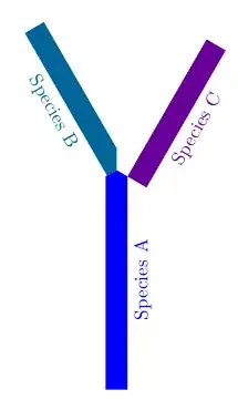 (-0.2,0) -- node[rotate= 150, sloped, below] {Species C} (-0.2,-3) -- (0.2, -3) -- (0.2, 0) -- cycle;