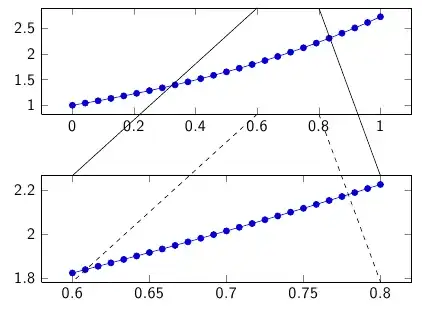 As an aside, when I toyed around with this, I noticed that without the option enlargelimits=false, the connecting lines end up quite far from where they're supposed to go, too; am I doing something wrong? Here's the code: