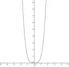 As we can see by looking to the right graphs of an even power are a "U" shaped curve. with greater powers having a longer "flat" section between 1 and -1