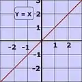 Equation of a straight line with slope m = 1 and passing through (0,0).