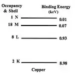 Fig. 1.8: Shell occupancies and binding energies for copper.