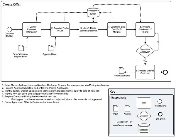 Lower Level Process Model: Detailed tasks with inputs/outputs included for Create Offer process:
