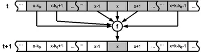 For the sake of readability the next definitions focus on one dimensional first order cellular automata.