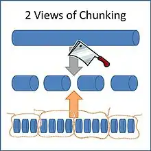 Two views of chunking: One view is to cut a big amount of information into couple of small groups. The other view is to put and relate pieces of small information into couple of groups