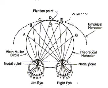 The naive realist idea of perception involves a point eye looking at a geometrical form. But the physics is different; there are two eyes with sometimes very different images in each. Light is refracted over the entire area of the cornea and directed over the entire area of the retina - there is no 'point eye'.