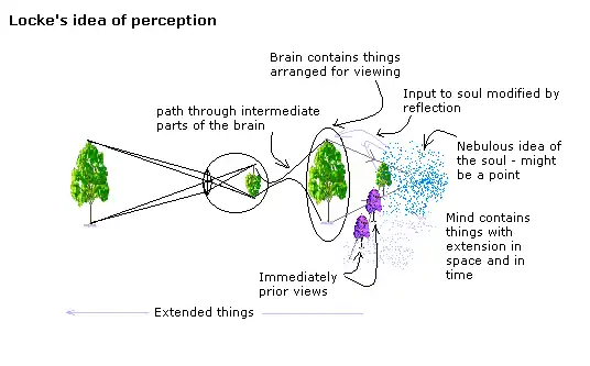 Locke's most important philosophical work on the human mind was "An Essay Concerning Human Understanding" written in 1689. His idea of perception is summarised in the diagram below: