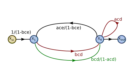 's outflow is then eliminated: is connected directly to using the product of the gains from the two edges replaced.