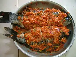 Pepes is cooking method of steaming the ingredients (fish, chicken, tofu, or mushroom) wrapped in banana leaves until it becomes tender, then grilling the packets. In this recipe any fresh water fish or salt water fish can be used as substitute. In restaurants serving West Java cuisine, where Ikan Pepes is always on the menu, the use of carp fish is very common.
