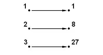 For example, for the function f(x)=x3, the arrow diagram for the domain {1,2,3} would be: