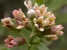 Pyrularia contains two species native to the Himalayas of China and one native to the southeastern United States. Buffalonut (Pyrularia pubera) is a root-parasitic shrub, Native to the Appalachians and foothills from Southern Pennsylvania to Alabama and Georgia.[1] It appears to have naturalized on Long Island.