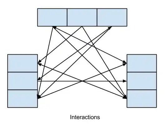 In the figure each layer relies on the layer below it to function and provides services to the layer above it. For example, a unit in layer one is only allowed to call units in layer 2 below it. All interactions are limited to pairs of layers that are next to each other in a stack of layers. We could replace a layer completely with a new implementation without affecting the rest of the stack, which achieves modularity. On the contrary if any arbitrary interaction is allowed we may end up with tightly coupled system as shown in the following figure.