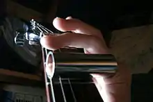 Resonator guitars are distinctive for not having a regular sound hole instead they have a large circular perforated cover plate which conceals a resonator cone. The cone is made from spun aluminum and resembles a loudspeaker. The bridge is connected to either the center or edge of the cone by an aluminum spring called the spider. The vibrations from the spider are projected by the cone through the perforated cover plate. The most common resonator guitars have a single cone although the original model patented in 1927 by John Dopyera had three and was called a tricone resophonic guitar. Resonator guitars are loud and bright. They are popular with blues and country guitarists and can be played with a slide or conventionally.