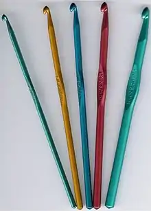 Prepackaged yarns generally come with a recommended hook size. Hooks are sold individually or in sets of similar sizes. It's often a good idea to buy a packaged set. The price per hook is lower for a package and the ability to change to a slighly different sized hook helps to keep an even gauge while working a piece.
