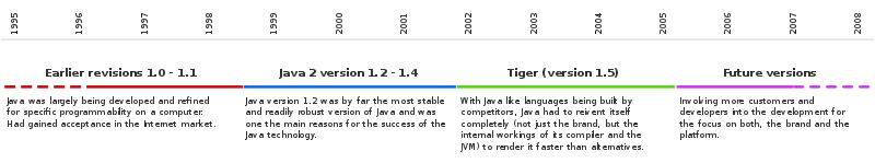 - 1 2 3 4 5 6 "Java Technology: The Early Years". Sun Microsystems. http://java.sun.com/features/1998/05/birthday.html. Retrieved 9 May 2008.