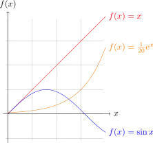 \draw[color=orange] plot (\x,{0.05*exp(\x)}) node[right] {$f(x) = \frac{1}{20} \mathrm e^x$};