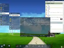 Compiz's famous rotating desktop cube. - Compiz is one of the first compositing window managers for the X Window System that uses 3D graphics hardware to create fast compositing desktop effects for window management. The effects, such as a minimization effect and a cube workspace are implemented as loadable plugins. Because it conforms to the Inter-Client Communication Conventions Manual standard, Compiz can substitute for the default Metacity in GNOME or KWin in KDE.
