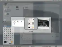 Compiz uses compositing and transparency to achieve attractive and useful effect, like window-switching, shown here.
