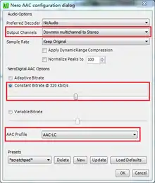 - Select "Constant Bitrate". Set the slider to "320kbit/s".