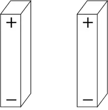 Two dipoles arranged in an orientation with a net-zero electrostatic interaction because the opposite-signed poles are at the same distance as the like-signed poles.