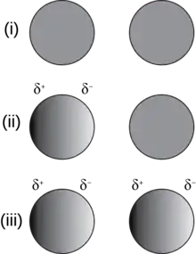 When we consider the effect that a charge (Q), has on a neutral atom at distance r, an induced dipole is created: