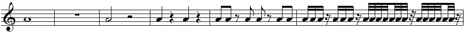 This image shows notes and rests, in order from longest to shortest.