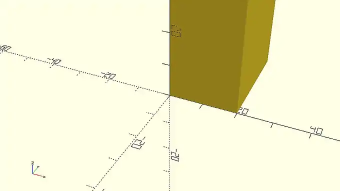 You should notice that every cube is created on the first octant. You can define an additional parameter named center and set it equal to true in order to make the cube centered on the origin. The complete statement is the following.