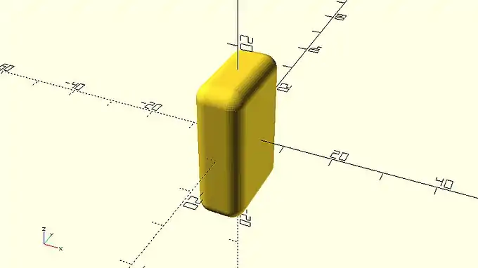 completely_rounded_box.scad use <MCAD/boxes.scad> $fa=1; $fs=0.4; roundedBox(size=[10,20,30],radius=3,sidesonly=false); |